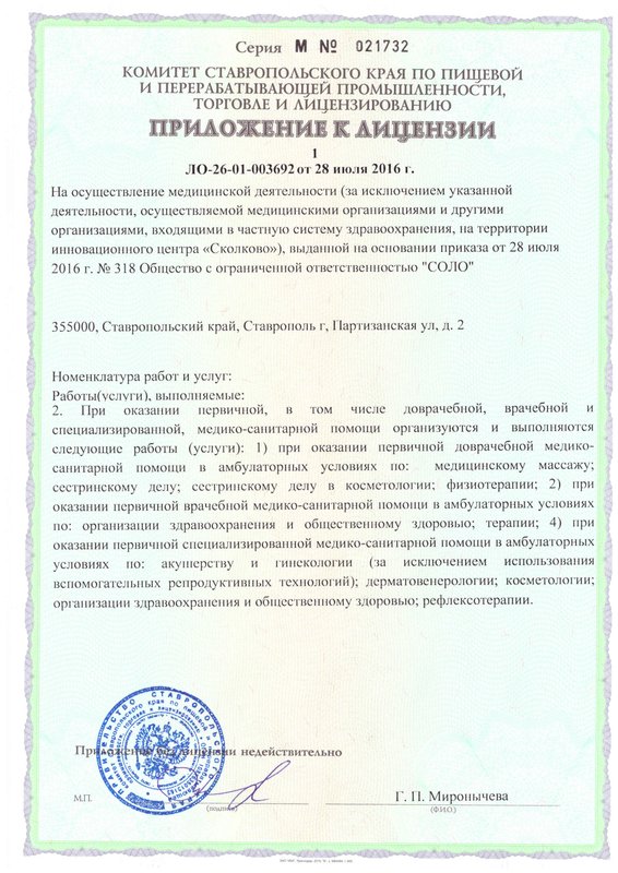 Медицинская клиника Соло - это многопрофильное медицинское учреждение, предлагающее индивидуальный комплекс процедур и услуг для каждого клиента. Работа клиники организована с учетом комфортного пребывания посетителей. Новейшее оборудование центра помогает провести диагностику организма пациента для составления плана лечения и профилактики. В клинике работают отделения гастроэнтерологии, эндокринологии, дерматологии, венерологии, гинекологии, психотерапии. Наши работники имеют высокую квалификацию и внимательно отнесутся к каждой вашей просьбе. Доверяя свое здоровье нам, вы можете не сомневаться в положительном результате. Также мы поможем с подбором диеты и коррекцией веса.
